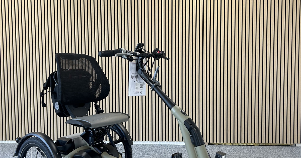 Nieuw binnen bij Zorgbroeder uit Surhuisterveen, deze splinternieuwe driewielfiets van Raam Compact met elektrische ondersteuning. In de prachtige kleurencombinatie Olijfgroen mat. Zeer chique.
