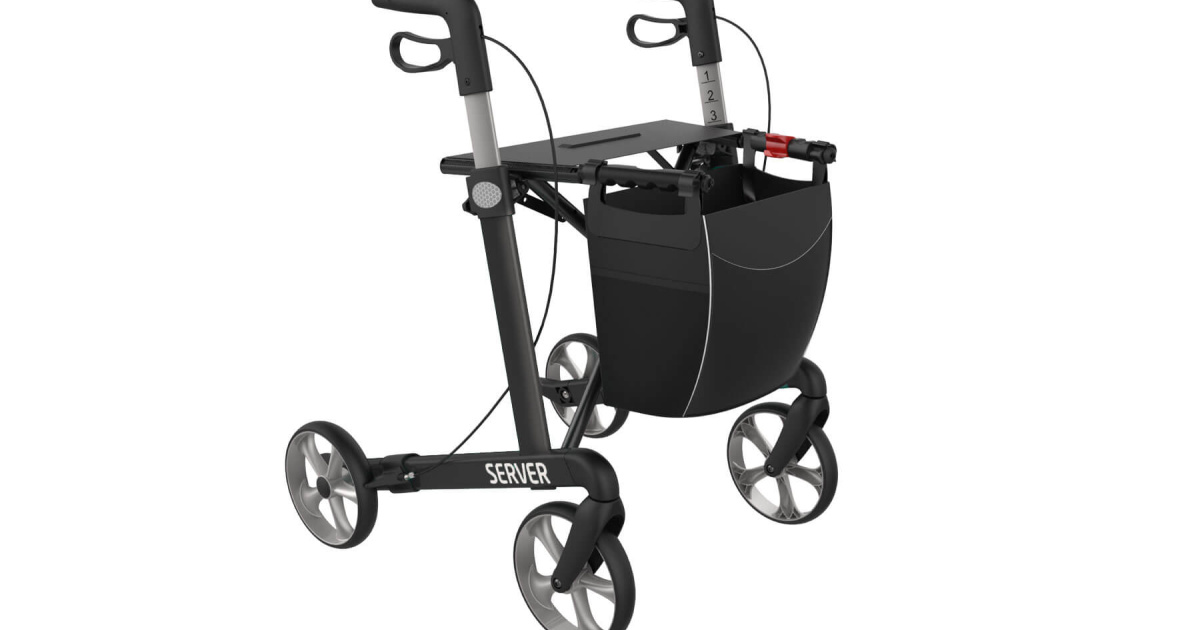 De stijlvolle Server rollator heeft een uniek driehoekig profiel en een vast gelast frame. Het is met een eigen gewicht van ongeveer 7 kg een van de lichtste rollators op de markt in de categorie gebruikers tot een maximaal gewicht van 150 kg.