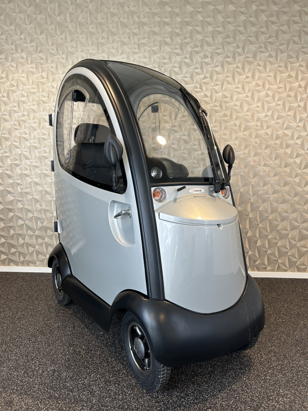 Nieuw binnen bij de Zorgbroeder uit Surhuisterveen, deze zeer nette staat verkerende overdekte vierwiel scootmobiel van Mango de NAPOLEON.