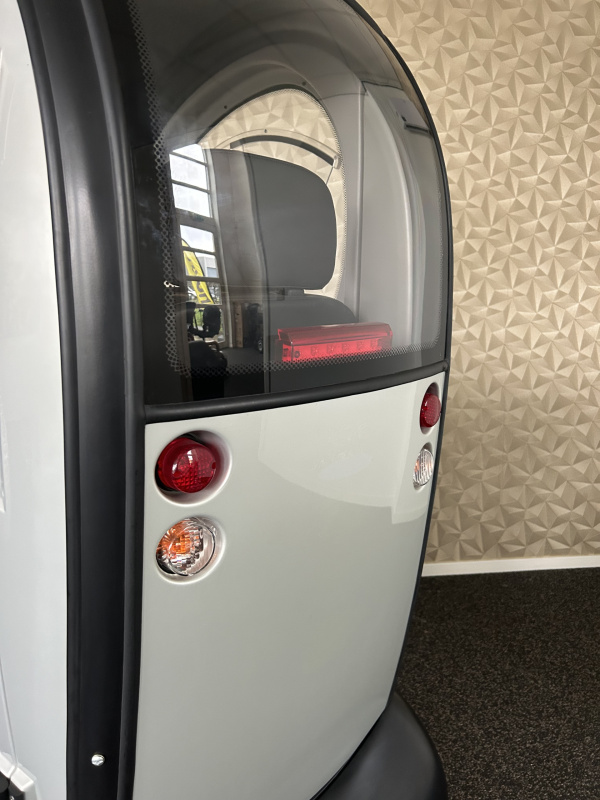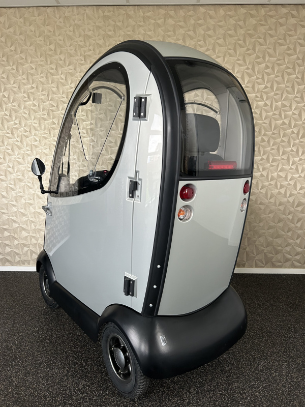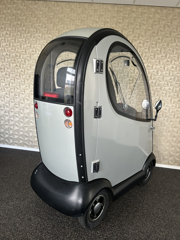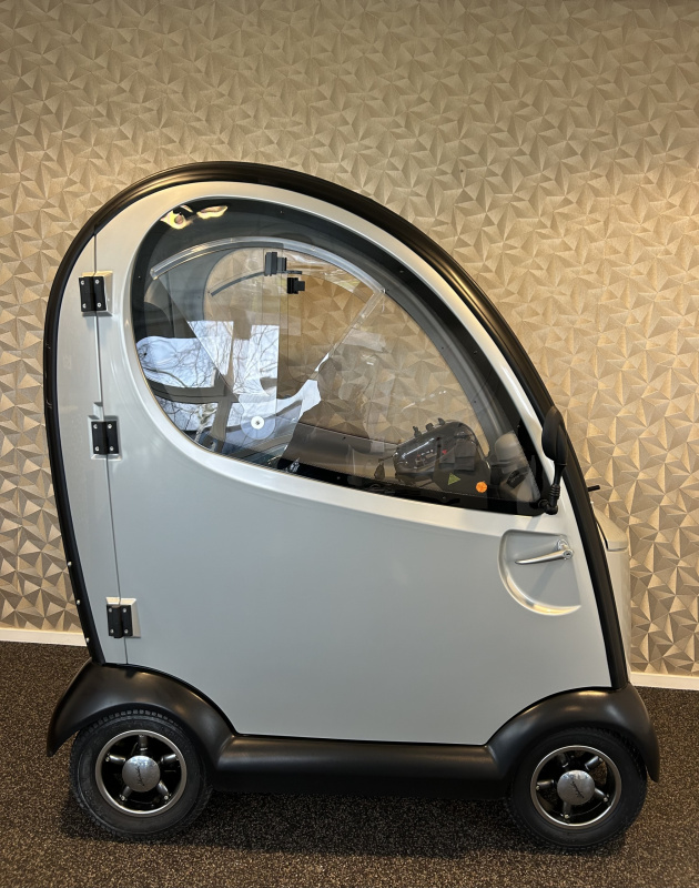 Met deze overdekte scootmobiel rijd je niet alleen droog, maar ook veilig omdat dit model van een stevige overkapping is voorzien die je op allerlei wijzen bescherming biedt. Standaard voorzien van een ruitenwisser.