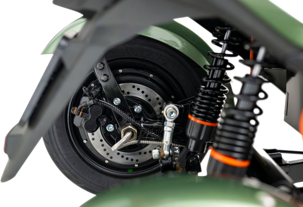- Actieradius tot 150 kilometer, dankzij de keuze uit een 72V35Ah of 72V60Ah lithium-ion accu.