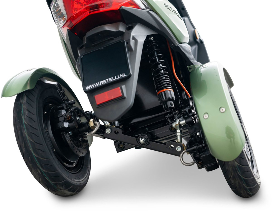 Doordat hij gebaseerd is op een scooter, heeft hij ook de voordelige rijeigenschappen van een scooter. In tegenstelling tot andere merken heeft de Retelli Conforto een geavanceerde achterasophanging waardoor de bochten soepel en veilig genomen kunnen worden. Wij kunnen de achteras ook stabiliseren.