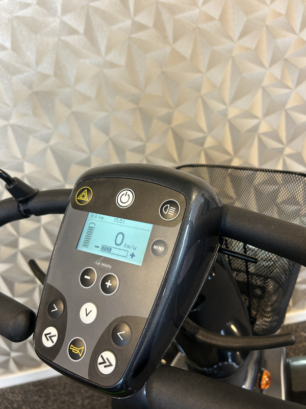 Nieuw binnen bij de Zorgbroeder uit Surhuisterveen, deze werkelijk in nieuwstaat verkerende Mezzo vierwiel scootmobiel van Life and Mobility. GRATIS STOKHOUDER!!!!