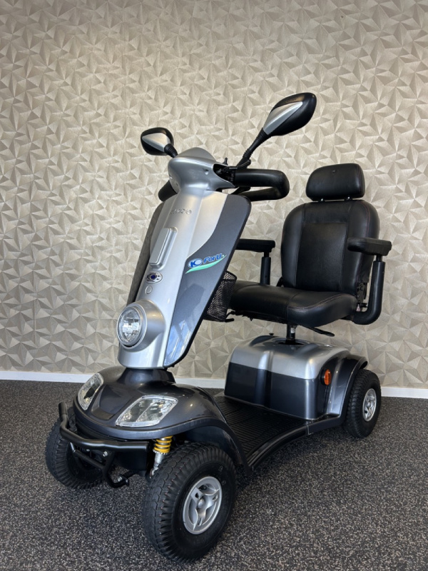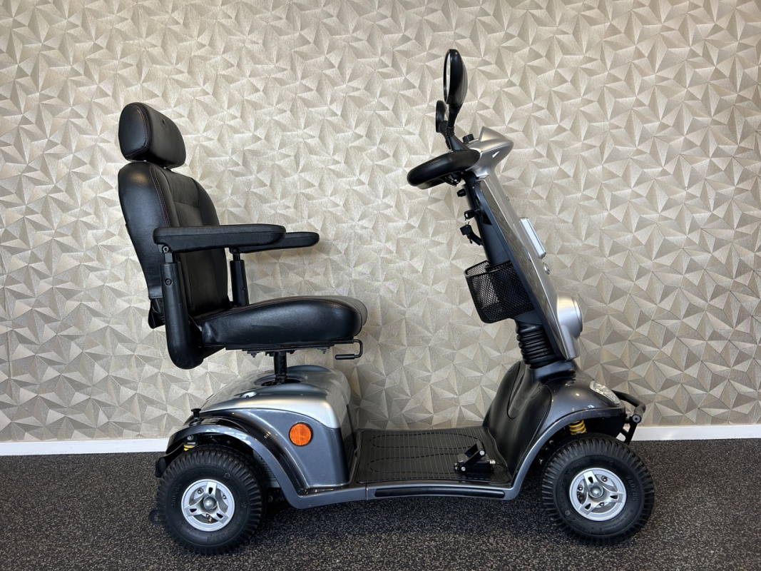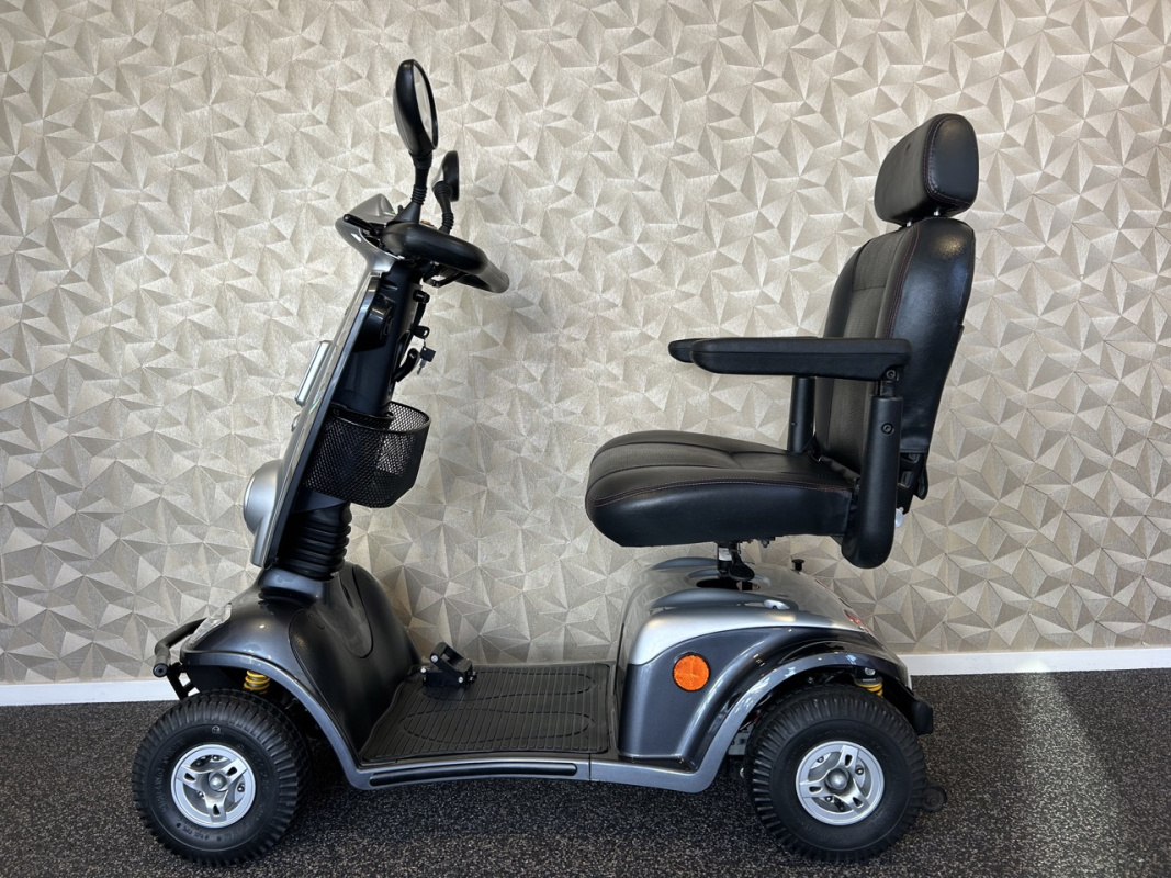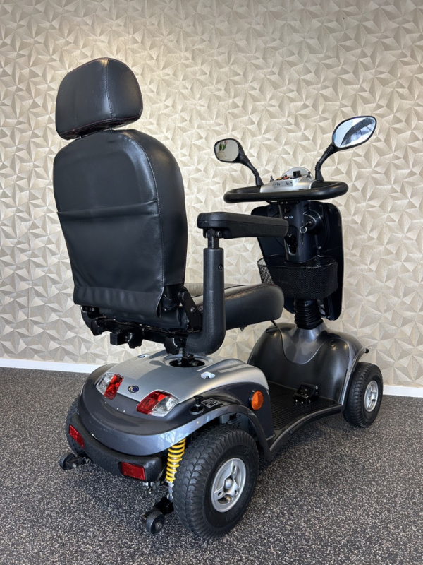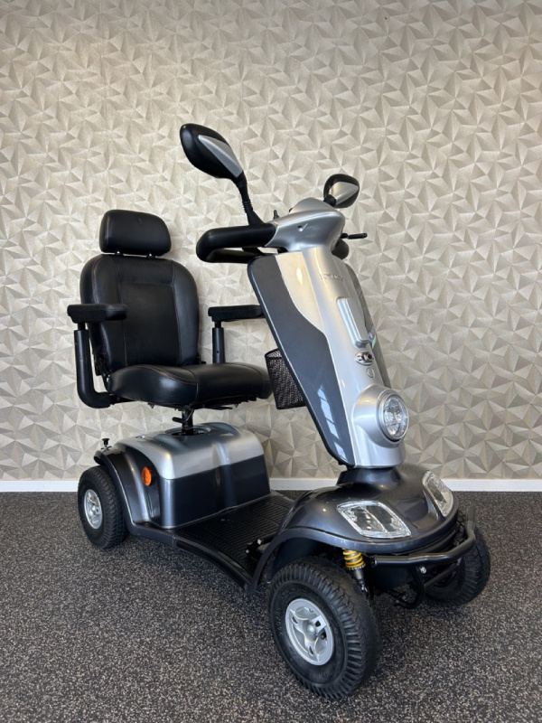 De Kymco Midi XLS is een scootmobiel die van alle markten thuis is. Hij heeft 4 wielen waardoor hij lekker stabiel is. Ieder wiel is onafhankelijk geveerd waardoor hij tevens lekker comfortabel veert.
